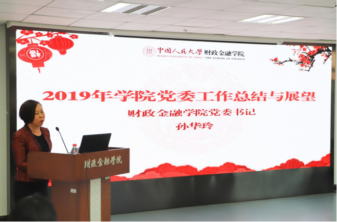 孙华玲书记作2019年学院党委工作总结与展望。她指出,2019年学院党委继续深入学习贯彻党的十九大精神,以习近平新时代中国特色社会主义思想为指引,牢固树立“四个意识”,坚定“四个自信”,全面落实全国高校思想政治工作会议和全国教育大会精神,落实新时代党的建设总要求。党建方面,学院全面推进“不忘初心、牢记使命”主题教育,深入推进“全国党建工作标杆院系”创建,接受校党委巡察组进驻巡察,圆满完成党委换届工作,进一步推进宣传工作;思想政治和学生管理工作上,学院党委抓好思想建设,组织各类特色品牌活动、志愿活动,推进毕业生的就业工作和人才培养创新性改革;学院党委努力做好工会工作、离退休工作和校友工作,努力推进学院各项工作顺利开展。