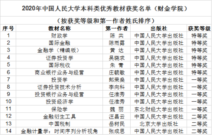 我院一直有自编教材的优良传统,早在20世纪60年代就组织编写了新中国第一部系统研究货币银行理论的教材、第一部有中国特色的金融学教材和第一部财政学教材。作为新中国财政金融高级人才培养基地,我院长期重视本土教材建设,优秀教材的质量和数量均在国内保持领先水平。为不断提高教材建设质量,我院设立本科人才培养委员会,专门研究本科人才培养环节的课程和教材建设,以精品课程建设为核心带动教材建设。长期以来,我院从人力财力等各个方面大力支持教材建设发展,鼓励教师积极开展教材编写,参与教材成果申报,定期组织教材选用审查,保证教材编写和使用的质量,教材建设工作整体运转良好。除以上举措,学院还在经验成果推广等方面对教材建设工作给予相应支持,确保教材建设的可持续发展。