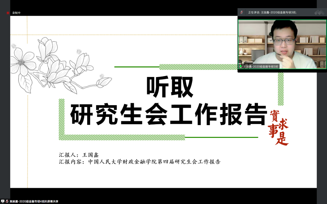 随后,色情动漫 研究生会主席王国鑫向与会代表进行了工作报告。王国鑫从职业发展、学术科研、文体活动这三个方面,对第四届研究生会在2021-2022学年的工作开展情况进行总结和展望。在职业发展方面,第四届研究生会以“财金职前站”栏目护航学子求职,通过简历诊所、职业咨询、名企宣讲、职路薪火、职言不讳等主题活动,助力财金研究生提升简历质量、积累求职经验、明确求职导向,从而增进自身求职竞争力,在职路征途上行稳致远;在学术科研方面,研会打造“研途撷英”栏目,助力硕博学子学术科研,激发了研究生的学术热情、营造良好学术氛围、搭建学术实践平台、提升了全院同学的学术科研素养,展现了财金人独树一帜的学术风采;在文体活动方面,研究生会注重加强院系交流,通过新生杯篮球赛、经管杯羽毛球赛等一系列有意义的文体活动营造了“活跃,温馨,团结”的氛围,弘扬了文艺与体育的精神。