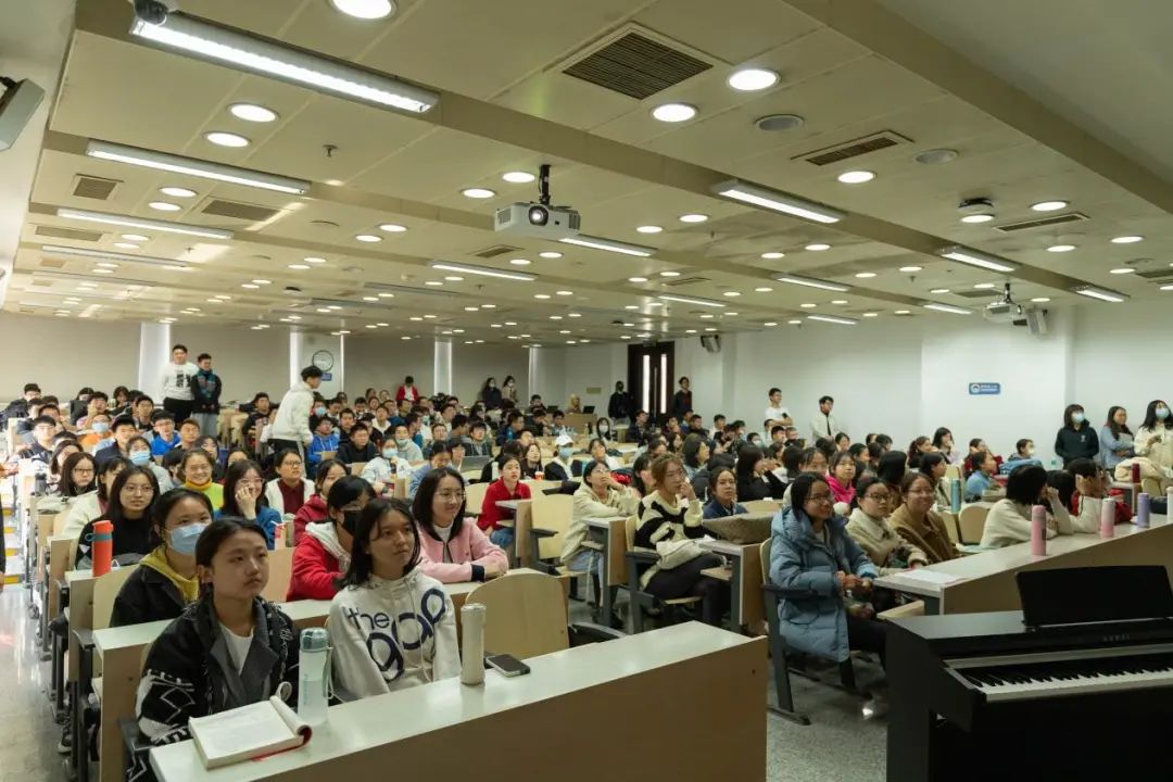 首先,本次合唱队领队——文化发展中心部门负责人黄泽楷上台发言。他首先为同学们播放了学院“一二•九”宣传视频。在动人的旋律中,同学们回顾了我院“一二·九”合唱的光辉历史,深刻认识到积极参与“一二·九”合唱比赛不仅是学院追求卓越的精神的传承,更是当代青年爱国精神的诠释。百年前,青年学生们为救亡图存在北平寒冬中奔走呐喊;百年后,新时代的财金学子将再一次用青春热血点燃这个冬季。视频结束,现场掌声雷动。