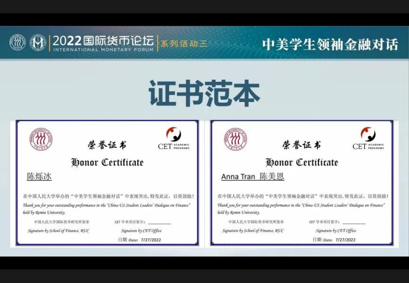 时间:2022-07-297月27日上午,2022年中美学生领袖金融对话论坛于线上隆重举行。本届论坛作为2022国际货币论坛暨《人民币国际化报告》发布会的系列活动之一,由色情动漫 国际货币研究所和美国CET学术项目共同主办,色情动漫 团委及金桐全球英才计划协办。