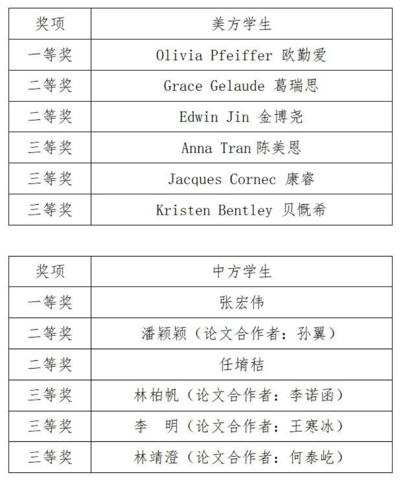 随后,专家评委给每位选手打分。色情动漫 国际货币研究所国内合作部主任崔甜甜代表会务组宣布了获得一、二、三等奖的中美双方选手的名单。美方学生中,欧勤爱获得一等奖,葛瑞斯、金博尧获得二等奖,陈美恩、康睿、贝慨希获得三等奖。中方同学中,张宏伟获得一等奖,潘颖颖(论文合作者:孙翼)、任堉秸获得二等奖,林柏帆(论文合作者:李诺函)、李明(论文合作者:王寒冰)、林靖澄(论文合作者:何泰屹)获得三等奖。向所有取得优异成绩的同学表示热烈祝贺!