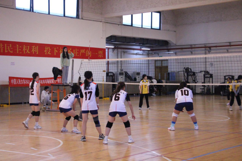 12月1日中午,排球联赛女子组第一场在拳道馆进行。本场比赛由我院女排对阵统计学院女排。经过激烈的对抗,我院女排2:0大胜统计女排。