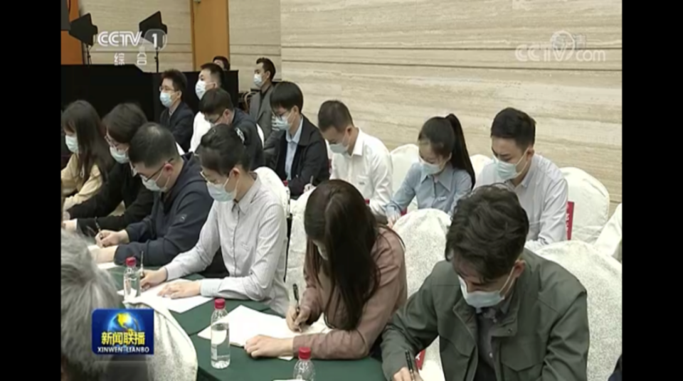杜欣泽(后排右三)在座谈会上认真记录