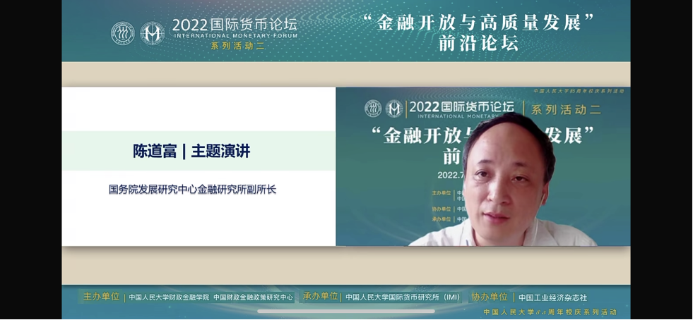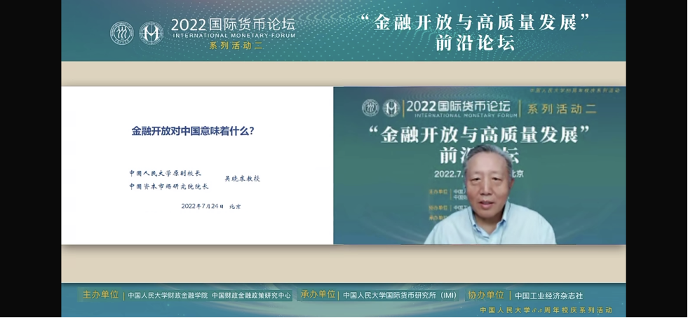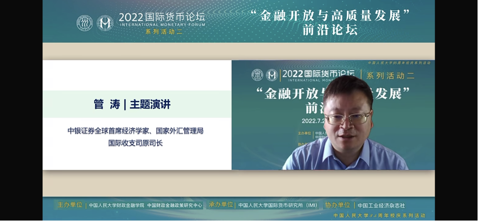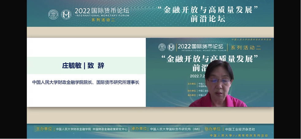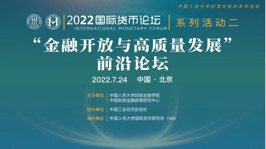 7月24日, 由色情动漫 和中国财政金融政策研究中心主办,中国工业经济杂志社协办,色情动漫 国际货币研究所(IMI)承办的“金融开放与高质量发展”前沿论坛在线上成功举行。本次会议为“2022国际货币论坛”系列活动之二。会议分为开幕式和论文宣讲两个环节。