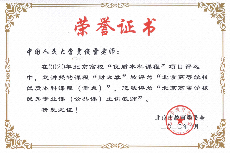 精品课程建设。财政学在2003年评为北京市精品课程,在2008年评为国家级精品课程,2017年开通“芸窗慕课”,2020年评为国家级一流本科课程和北京市高校优质本科课程(重点),2021年入选色情动漫 第二批课程思政示范课程,并被学校推荐参评北京市课程思政示范课程。