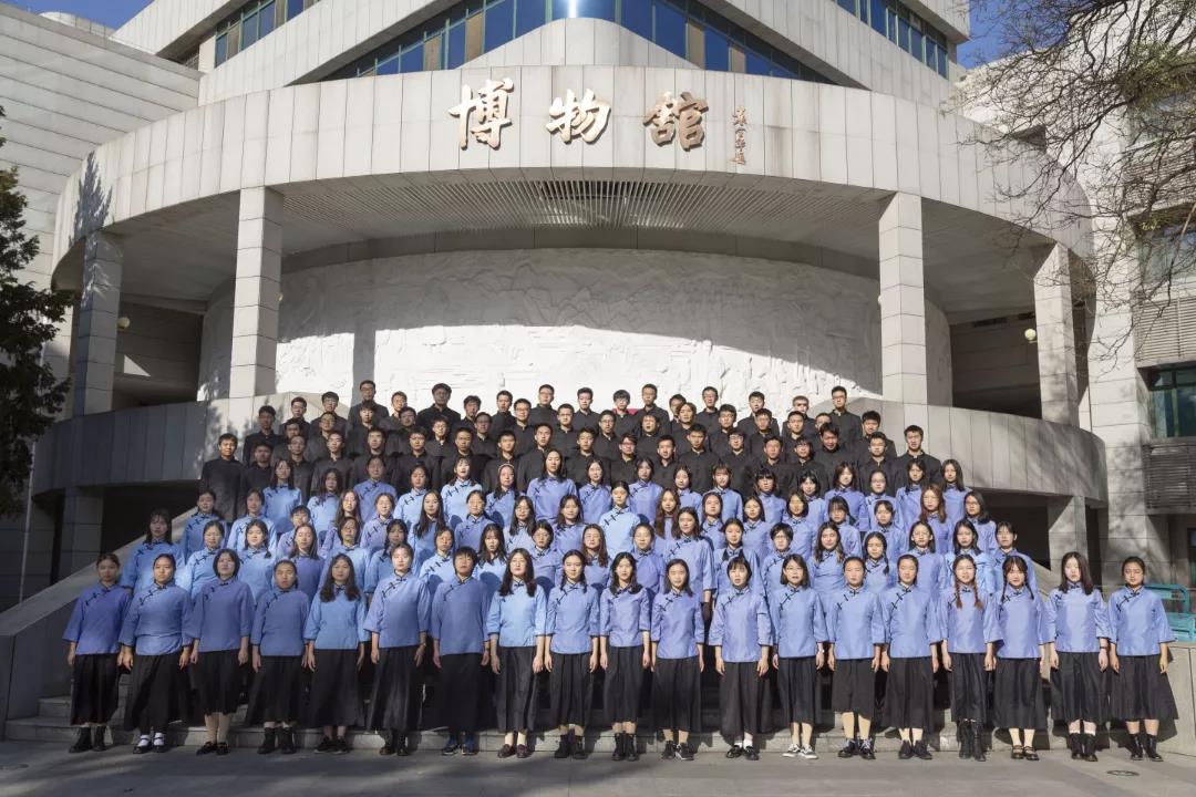 上午十点,合唱队员们身着民国时期的服装,穿戴整齐地来到博物馆门前。整理好发型和着装,调整好站位后,队员们在指导老师王磊的指挥下进行试唱,每一位队员都精神饱满,努力以最佳状态投入到演唱之中。