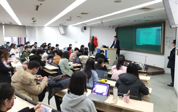 3月3日下午6时,保险系副主任何林教授走访张俊岩副教授的保险法规与监管课堂。