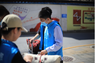 报到日清晨,学院迎新工作团队便到达迎新点,准备物资,布置现场,等待新生的到来。信息核验、签到指引、物资分发,工作人员有条不紊地接待每一位前来报到的新生,笑脸、问候、祝福,让新生倍感温暖与亲切。由于疫情防控的特殊原因,家长不能陪同进校,学院安排志愿者协助新生搬运行李,顺利完成入住手续。迎新过程中,各个岗位的志愿者各司其职、团结协作,从现场报到、宿舍入住、后勤保障等方面落实了迎新工作,让新生家长放心的同时也极大地为新同学们提供了便利。
