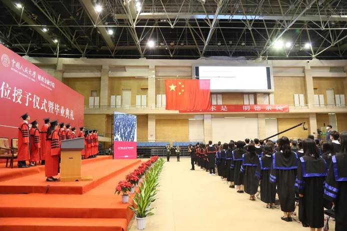 学位授予仪式上,伴随着激昂的音乐,刘元春、庄毓敏、张杰、张成思、谭松涛、王芳、赵锡军、何平、吕冰洋、马勇、何林、刘勇政、马光荣等13位教授,为毕业生拨穗并颁发学位证书,祝贺同学们圆满完成学业。