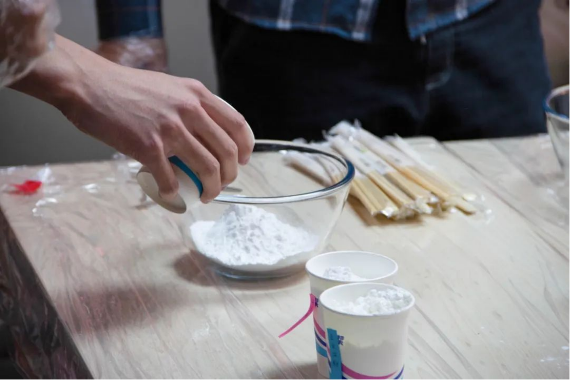 活动正式开始前,桌上已整整齐齐地码放了容器、手套等厨房用品以及各种所需原料,活动室俨然被改造成了小厨房。