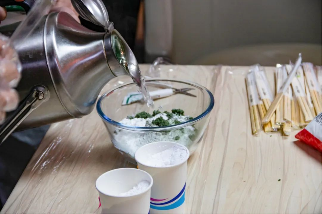 包青团类似于包包子,有制作面食经验的老师很快找到了诀窍,并分享给在场的“厨艺小白”。半个小时左右,第一批软糯Q弹、色泽清新的青团被送入蒸锅,屋内艾香四溢。