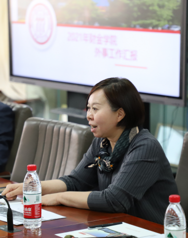 首先,钱宗鑫对学院2021年整体的国际交流工作做汇报。从国际伙伴交流与合作、国际会议、海外宣传、外事服务与管理、国际学生管理、全英文金融科技项目等方面介绍了学院过去一年的的成果和成绩。钱宗鑫指出,2022年,学院将继续做好全方面的国际交流与合作,努力提升海外宣传水平,开拓新的国际合作伙伴与合作模式,并打造世界一流水平的金融学科类全英文项目。