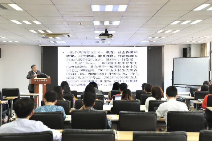 在导学环节中,朱青教授借助翔实的数据和生动的生活实例,幽默诙谐地讲述了十八大以来一般公共预算的变革。他强调,政府一般公共预算中社会保障支出在持续稳步提升,覆盖全民的社会保障体系在持续完善,保障水平在稳步提高。通过政策变革阐述和国内外比较,朱青教授带领同学们更充分地理解了我国“坚持以人民为中心的发展思想,不断保障和改善民生、增进人民福祉,走共同富裕道路的显著优势”。