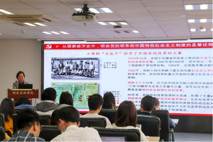 孙华玲书记以“学百年党史,彰显财金担当”对本次课程进行总结,加深了学生们对“中国制度优势”的认识和理解。她表示青年学子应当从国家经济史中领会党的领导和中国特色社会主义制度的显著优势,应当从院史专业史中体悟财金人代代传承的红色基因和使命担当,应当从党史和专业中汲取赓续红色血脉奉献无悔青春的精神力量。她勉励青年学子,既要学好党史、专业史、院史,不忘记过去的路,也要积极向前看,争取将来成为书写强国史的中坚力量。
