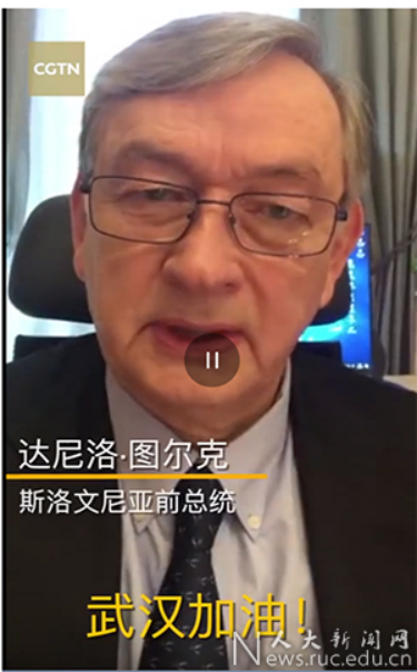 斯洛文尼亚前总统图尔克通过人大重阳平台传递“武汉加油”
