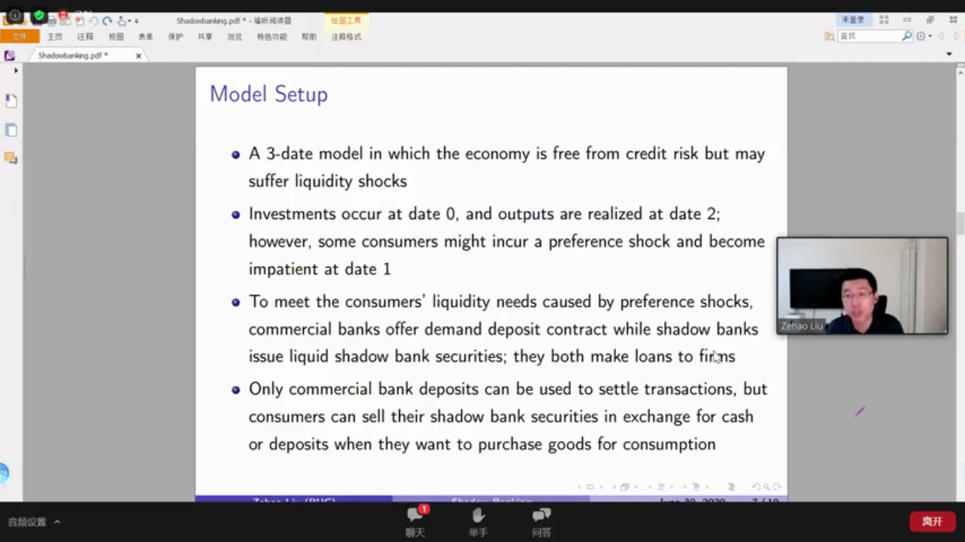 色情动漫 刘泽豪助理教授分享的论文“In the Shadow of Shadow Banking: A Liquidity View”研究了影子银行在具有外部货币和内部货币的经济中的流动性作用。将影子银行引入经济会降低以现金和存款总和衡量的货币供应量,而由于影子银行负债具有流动性,支付流动性可能不会减少。由于影子银行在不受流动性法规限制的情况下向企业提供贷款,因此企业可获得的信贷总量增加。影子银行的存在提高了信贷流动性与支付流动性的比率,从而加剧了流动性短缺并导致了过度投资的问题。影子银行负债的流动性的改善可能加剧或缓解过度投资的问题,具体取决于流动性监管的严格程度。