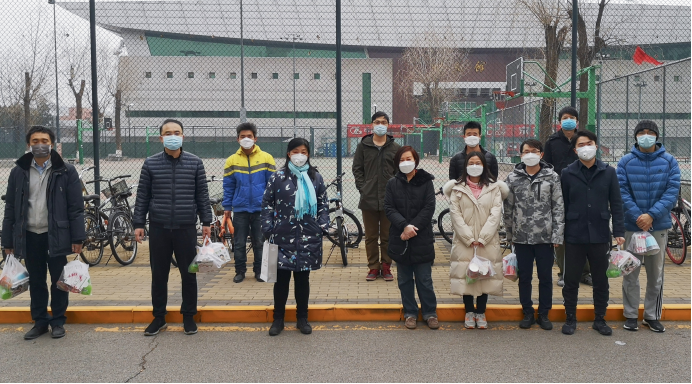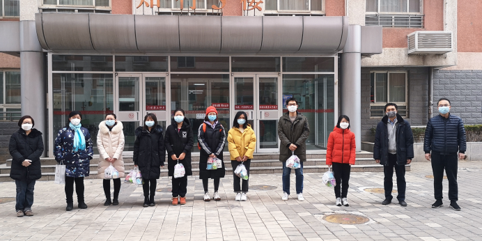 学院领导给在校生们分发了生活日用品、方便食品和口罩、消毒液等防护品,为同学们的在校生活增加一份保障。