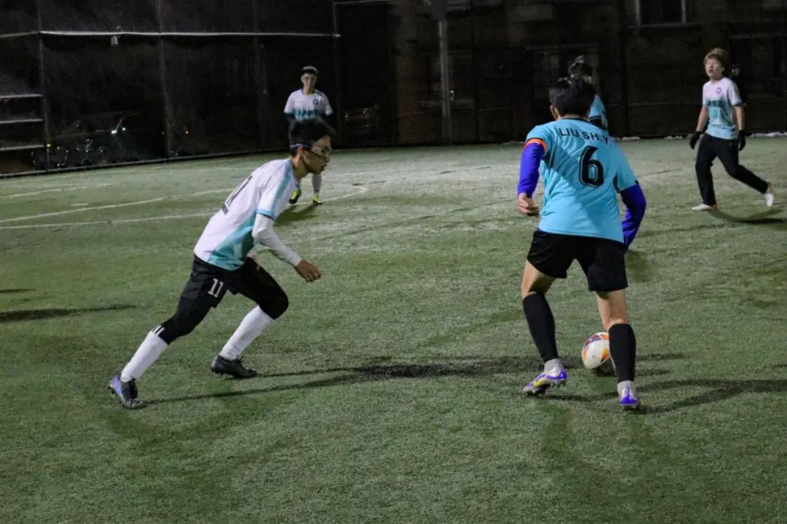 开场第1分钟,经院左边锋加速杀入财金后场后横传造成险情。