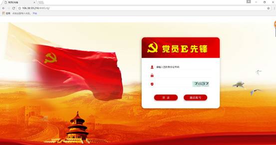 一、 登陆北京市党建工作平台(网址106.38.59.216),点击右侧“党员E先锋系统”。